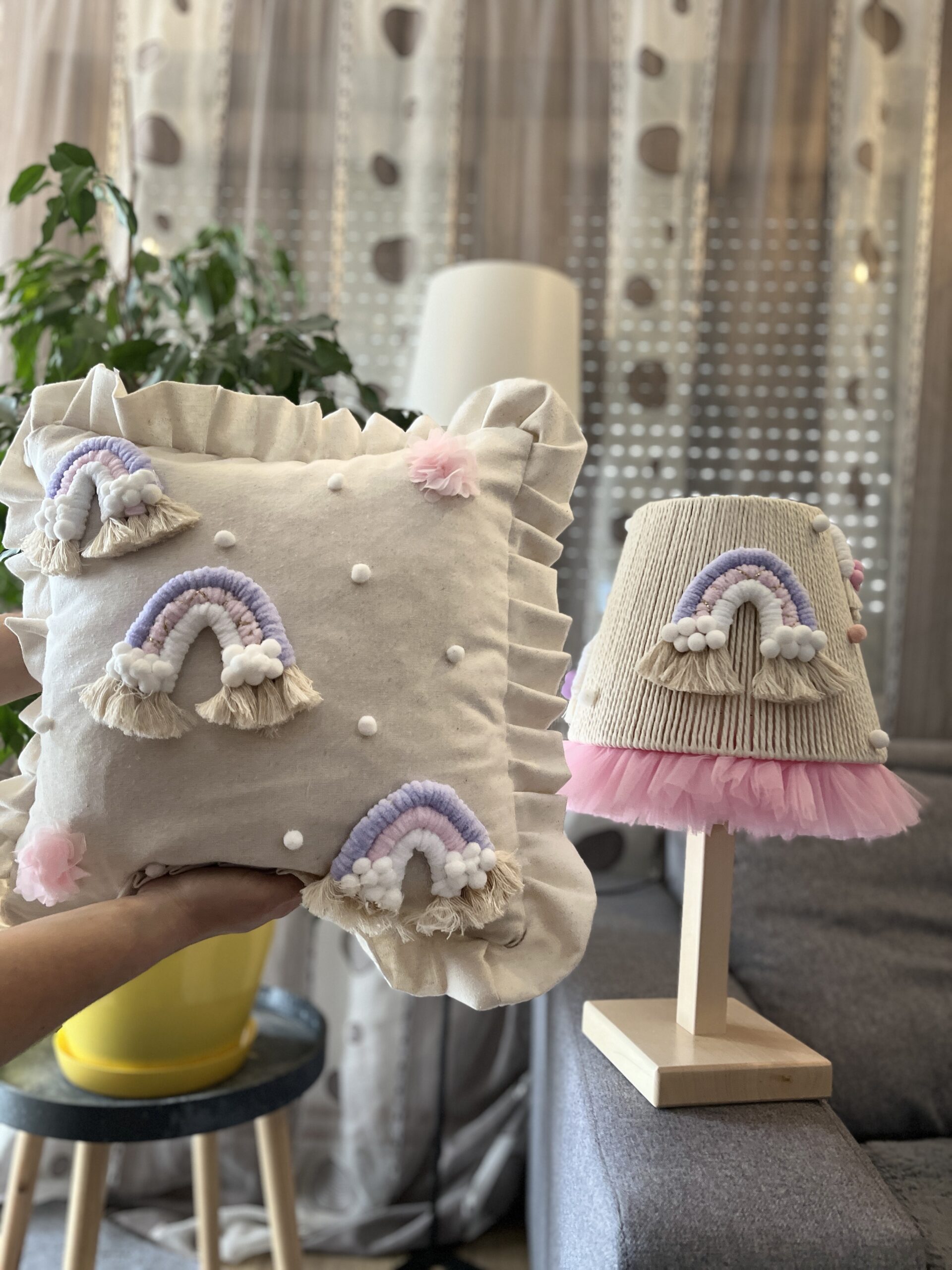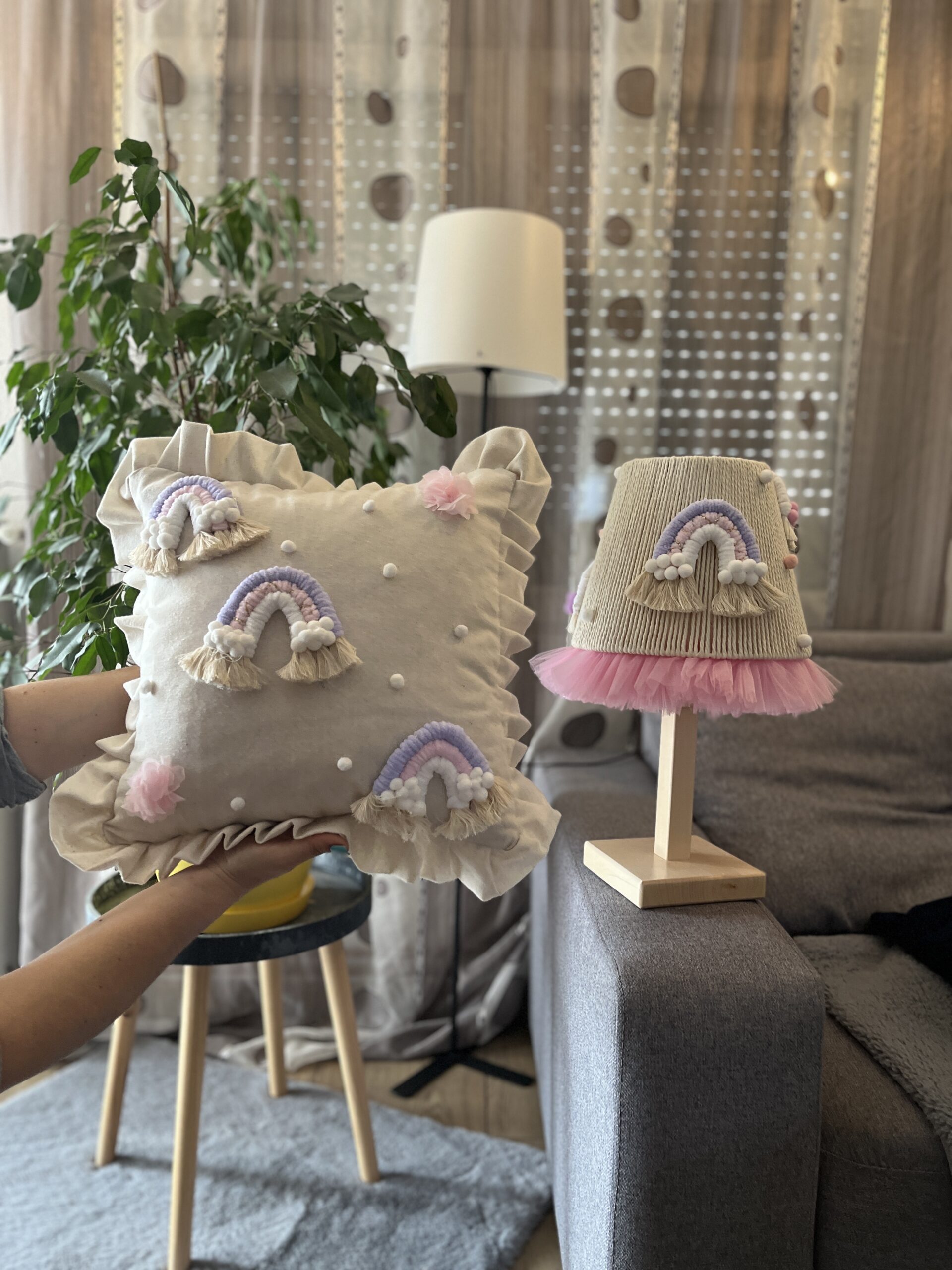 Ulepšajte svoj dom sa našim ekskluzivnim dekorativnim jastukom – savršenim ručno rađenim jastukom sa simpatičnim Dugama!